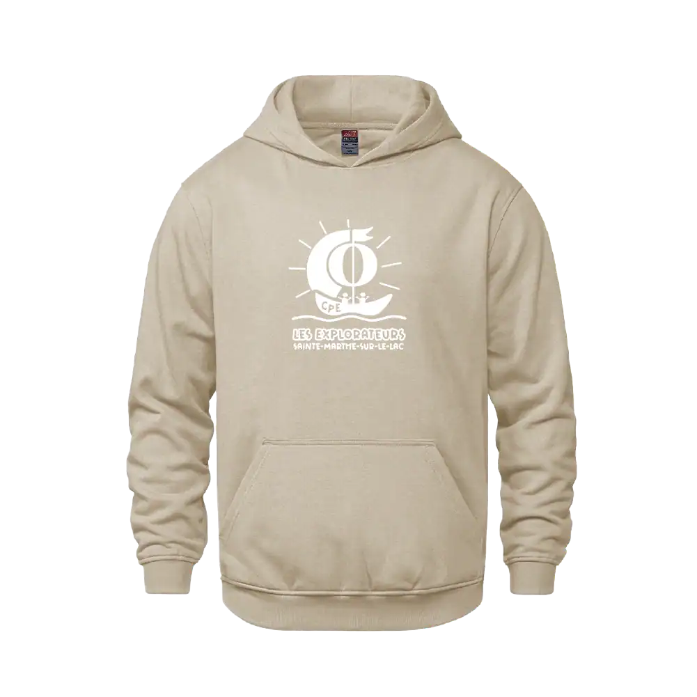70% coton, 30% molleton de polyester ร  fibres mรฉlangรฉes (Couleurs chinรฉ) 60% coton, 40% molleton de polyester ร  fibres mรฉlangรฉes. Capuchon doublรฉ en mรชme tissu avec cordon de serrage. Poignets et taille en tricot cรดtelรฉ. Poche kangourou.